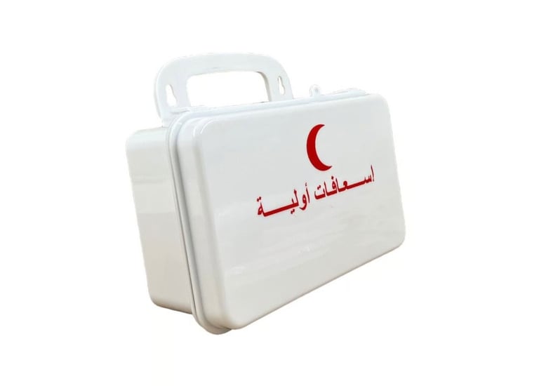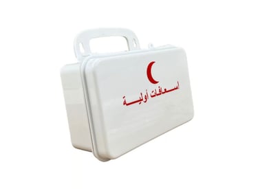 Plastic first aid kit designed for emergencies, lightweight and easy to carry. Ideal for storage in vehicles, can be customized with medical supplies as needed. Be prepared for any emergency with this kit.